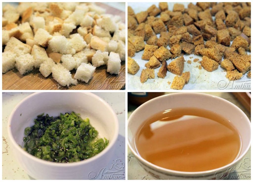 – Đem bánh mỳ ra phơi nắng khoảng 3-4 tiếng sau đó rán bánh mỳ vàng đều hoặc có thể cho vào lò nướng, nướng ở nhiệt độ 160 độ C 5-10 phút đến khi bánh mỳ vàng đều.