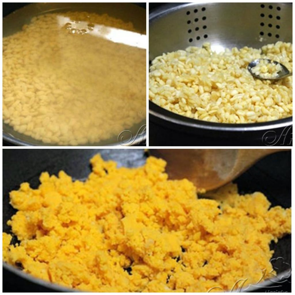 – Đến khi đỗ xanh tơi mịn, bạn nêm vào một ít muối cho vừa ăn.