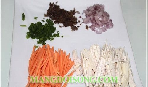 - Khoai môn, khoai tây, cà rốt, củ đậu gọt vỏ rửa sạch thái chỉ