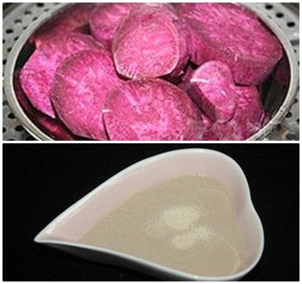 Khoai lang gọt vỏ thái miếng nhỏ sau đó mang hấp chín chừng 15 phút. Sau đó dùng muỗng nghiền mịn khoai ra.