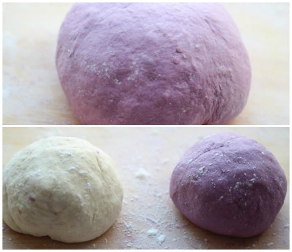 Nhào bột mịn và mượt cho phần bột tím và trắng