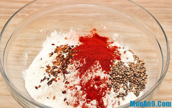- Muối + ớt bột + hạt tiêu đen