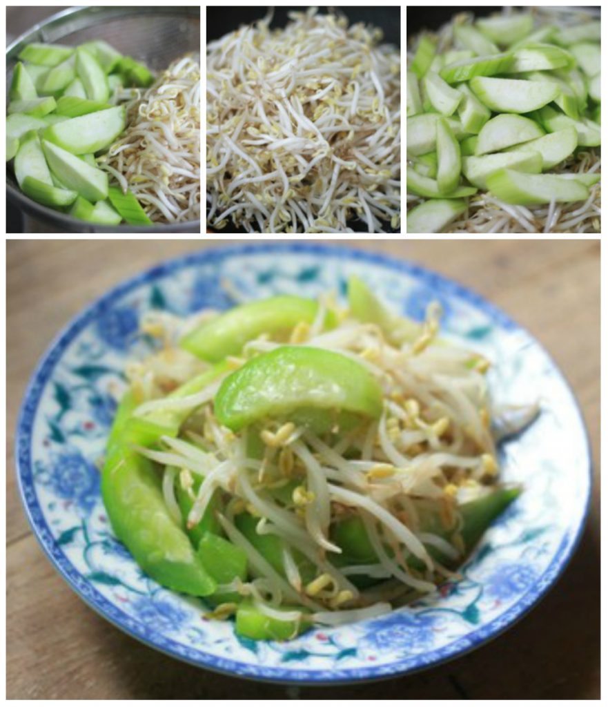 Giá đỗ thì giòn, còn mướp lại mềm và thơm, có thể ăn nhiều mà không gây ngán.