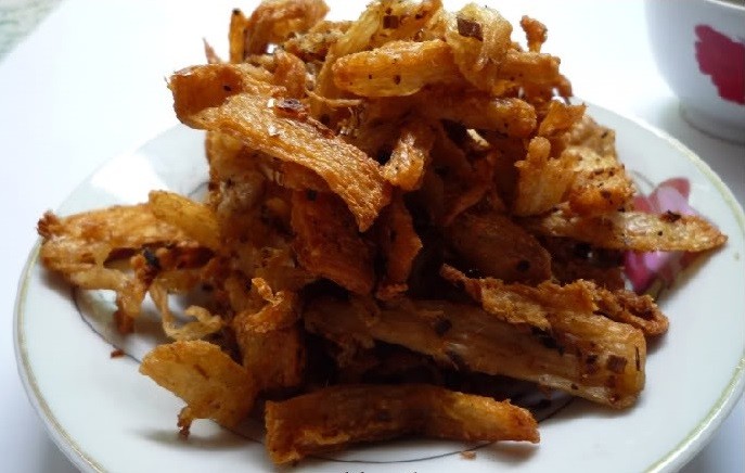 Chẳng hạn, món “chả lụa” là món ăn được làm từ quả chuối mật nấu chín, bóc vỏ, giã nhỏ với gia vị, bột thính, xong trộn đều với bí đao thái hột lựu, gói lá chuối đem hấp; “chả quế” thì được làm từ khuôn đậu, trên mặt phết phẩm màu đem hấp; “sườn rán” vốn là khoai lang, vỏ đậu xanh bọc ngoài, chiên vàng; “chả ram” là nấm, miến tàu, gói bánh đa nem, còn “thịt gà xé phay” là mì căn (bột mì đã loại bỏ tinh bột), bóp tiêu muối, rau răm…