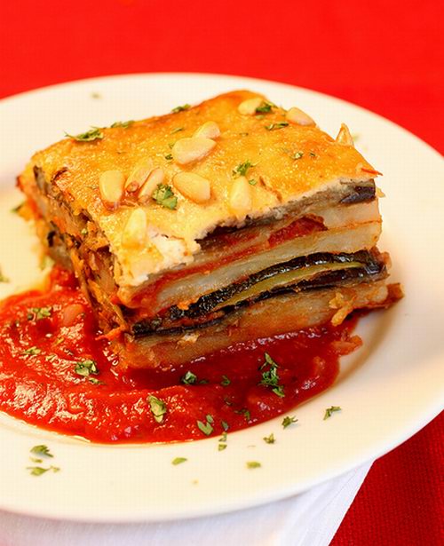 Bánh cà tím Địa Trung Hải cũng được cô Keegan Baur đưa vào thực đơn này. Thành phần chính của món bánh này là cà tím và khoai tây, đây là một trong những món ăn được ưa chuộng trong thế giới đồ chay.